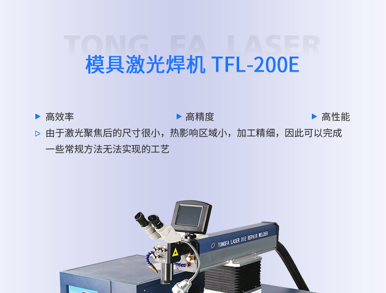 出口型模具激光焊機(jī)是通發(fā)激光公司專(zhuān)門(mén)為出口國(guó)外客戶(hù)使用而設(shè)計(jì)的系列機(jī)型TFL-200E,適用于各類(lèi)精密注塑模具、壓鑄模具等模具激光修補(bǔ)焊接;同時(shí)也適合鑄件沙孔激光修補(bǔ)、模具崩缺激光修復(fù)、過(guò)切加工等的激光修補(bǔ);各類(lèi)金屬結(jié)構(gòu)件、金銀首飾的激光焊接加工。