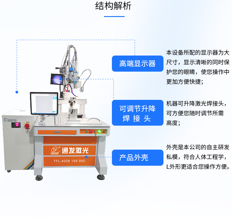 2、強大的PC控制,易于編程、調(diào)試和維護??赏瓿勺詣踊虬胱詣拥狞c焊、對接焊、疊焊、密封焊,針對復(fù)雜的平面直線、圓弧及任意軌跡的焊接。